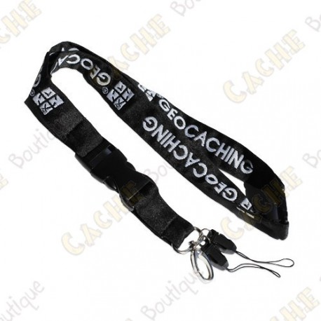 Black geocaching lanyard licensed by Groundspeak.